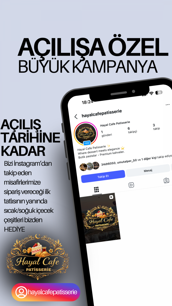 Açılışa özel olarak, Instagram’dan Hayal Cafe Patisserie hesabını takip eden tüm misafirlere;